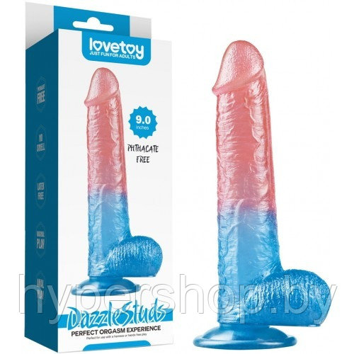 Реалистичный фаллоимитатор с мошонкой и цветным градиентом Lovetoy Dazzle Studs 23 см